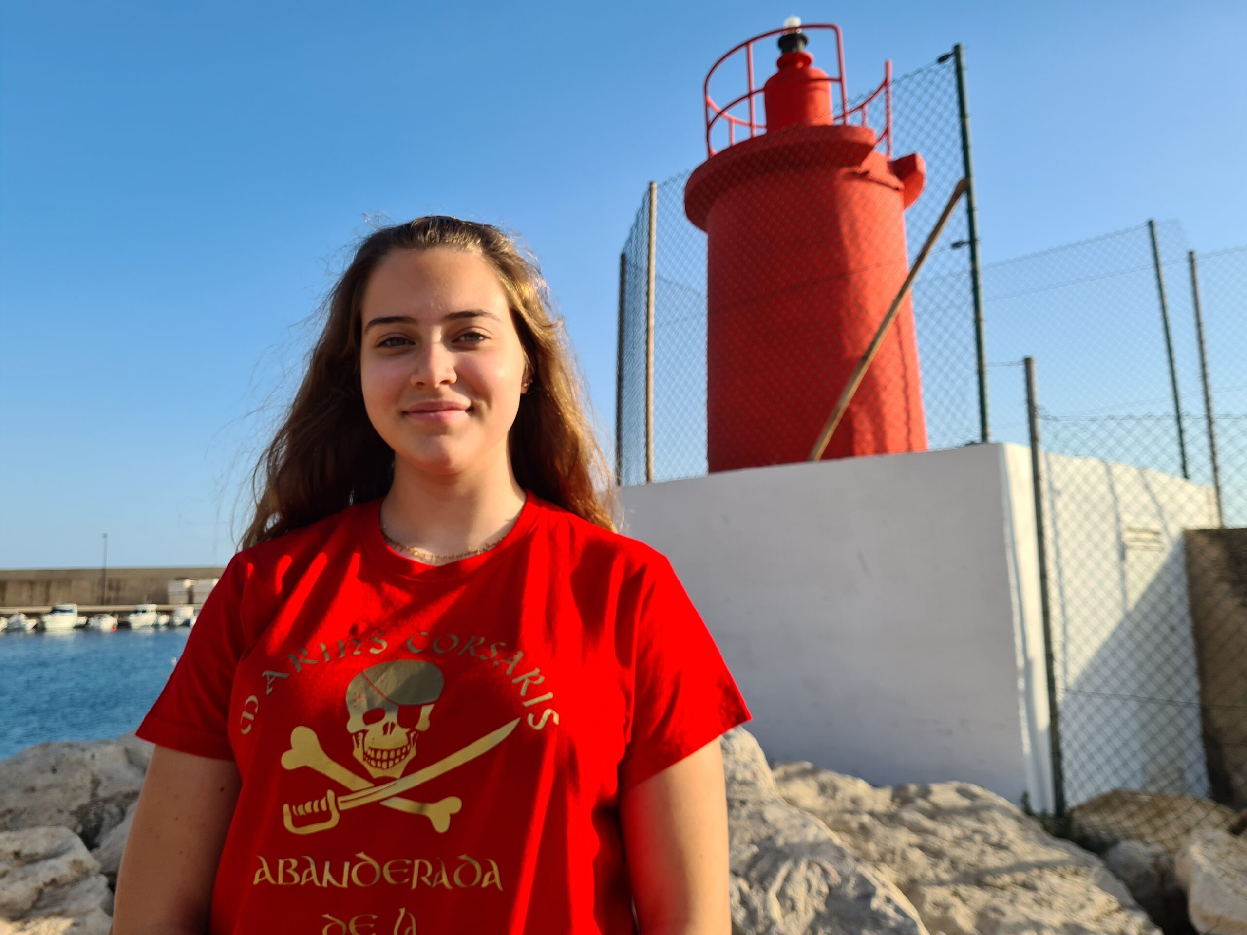 Así es la Abanderada de la Asociación de Moros y Cristianos de Calp, que este año recae en el Bando Cristiano. Una joven de 16 años que pertenece a la Filà Marins Corsaris, que le encanta disfrutar en familia y tiene unas ganas inmensas de descubrir el mundo viajando con sus seres queridos.