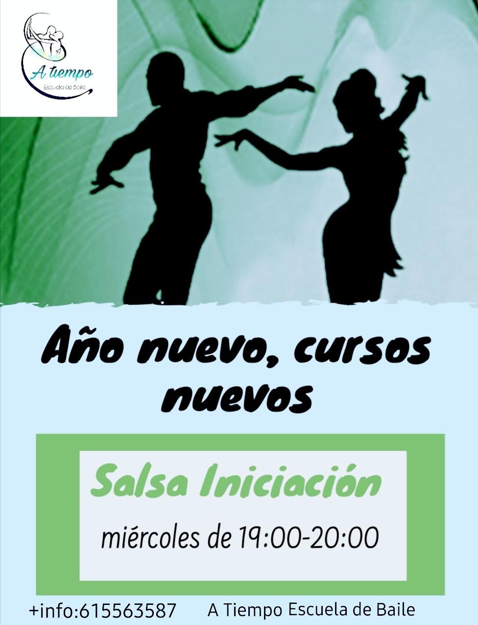 A Tiempo Escuela de Baile te ofrece salsa y bachata, nivel intermedio, kizomba, flamenco, afrofitnees, ballet y baile moderno para niñ@s. Pero como ellos también quieren empezar el nuevo año con nuevos propósitos, han ampliado su oferta con bachata y salsa iniciación, por lo que aquellos que quieran aprender pueden empezar desde 0.