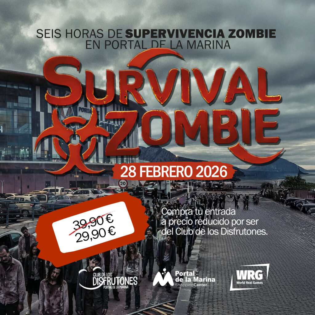 El Centro Comercial Portal de la Marina, propiedad de HLRE y gestionado por Grupo Lar, volverá a transformarse en un escenario postapocalíptico el próximo sábado, 28 de febrero, con la segunda edición de Survival Zombie, un Scape Room que reta a los participantes a sobrevivir a una noche llena de zombis, enigmas y adrenalina.