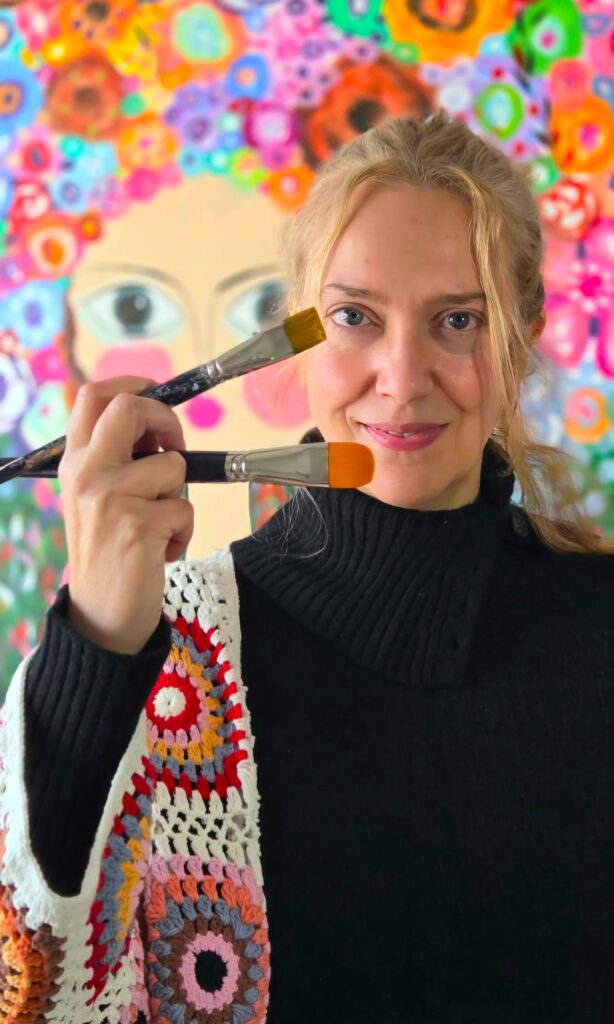 Me encanta esta pregunta, para mí es nuevo y te explico el por qué. Llevo bastantes años pintando caritas, con un estilo muy similar, pero las pintaba con los ojos cerrados. Hace cerca de un año decidí pintarlas con los ojos abiertos y es otro mundo; ya no sólo ves la carita y su decoración con flores y colores, sino que se ve un alma en ellas, se ven de otra manera y esto me ha motivado mucho. Imagino que tienen mucha dulzura, pero lo más interesante es que el espectador considera en su mirada lo que realmente les produce en ellos.