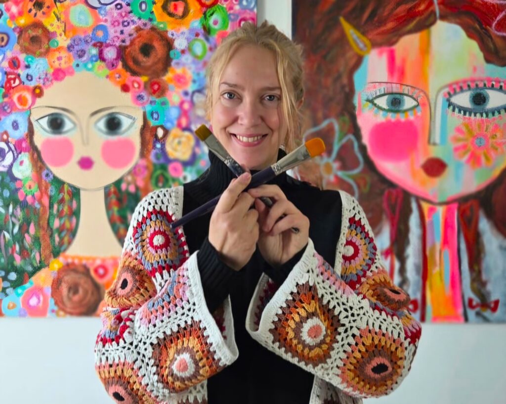 Me encanta esta pregunta, para mí es nuevo y te explico el por qué. Llevo bastantes años pintando caritas, con un estilo muy similar, pero las pintaba con los ojos cerrados. Hace cerca de un año decidí pintarlas con los ojos abiertos y es otro mundo; ya no sólo ves la carita y su decoración con flores y colores, sino que se ve un alma en ellas, se ven de otra manera y esto me ha motivado mucho. Imagino que tienen mucha dulzura, pero lo más interesante es que el espectador considera en su mirada lo que realmente les produce en ellos.