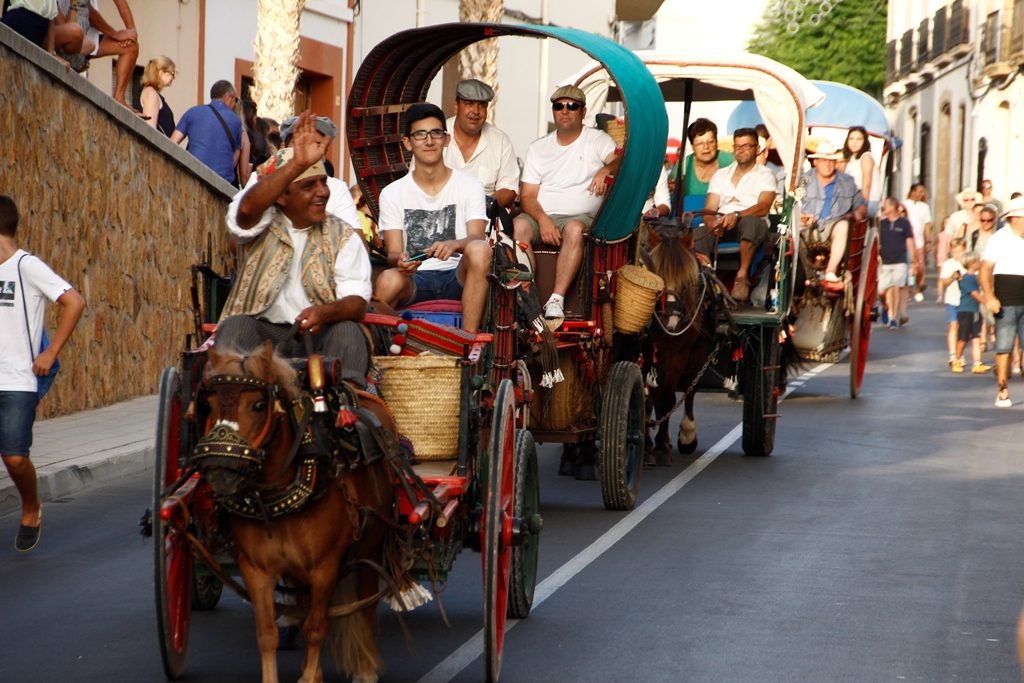 Sobre las 19h dará inicio la Cabalgata del Moscatel desde la avenida Santa Catalina hasta llegar a la avenida de Las Palmas a cargo de la Asociación de Traginers Alejandro Morell, el Grup de Danses Font Santa de Teulada, la Comisión de Fiestas Infantil SVF 2026 y la Colla El Falçó.