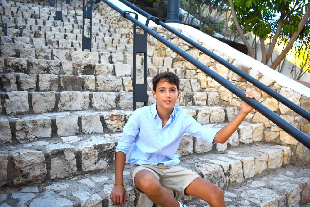 Un joven que compagina su pasión por el cine con sus estudios de Primaria, cursa 6º en el CEIP Cap d’Or de Moraira. Debido a la falta de academias de cine en la zona, actualmente tiene una coach que le da clases semanales online. También va a un logopeda para una buena dicción.